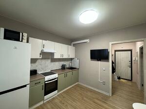 Жилая площадь 16.9 кв. м, внутри евро ремонт. Квартира меблированная, есть бытовая техника: холодильник, телевизор, совмещенных санузлов — 1, балконов — 1.
